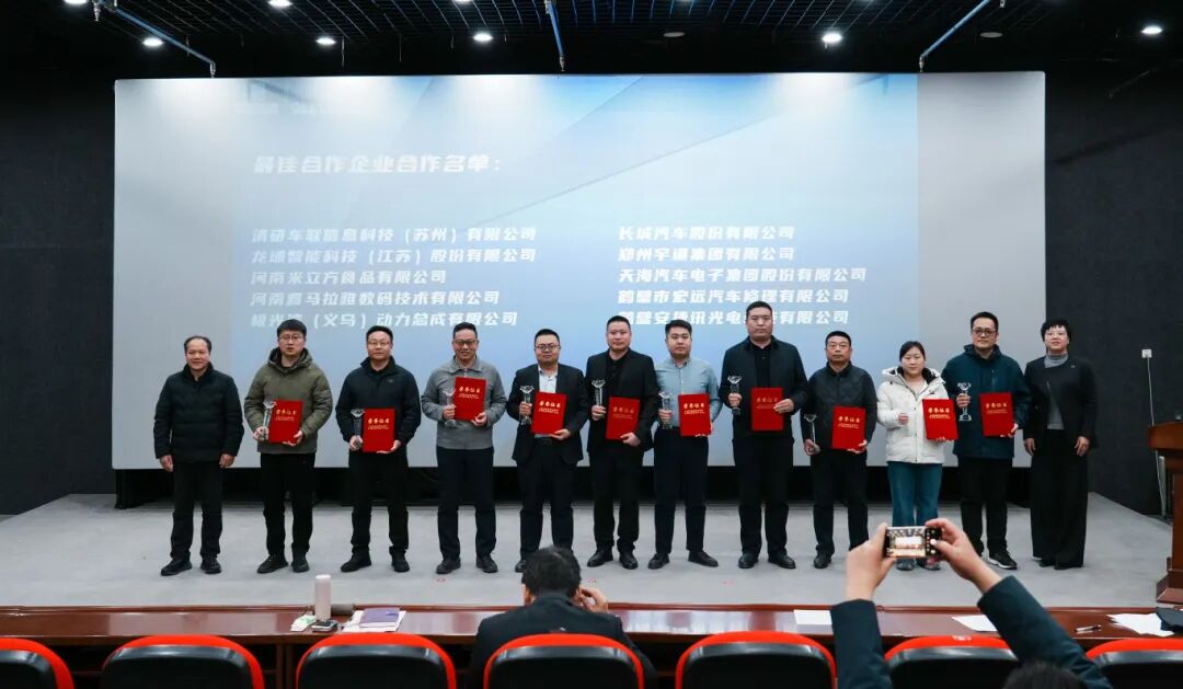 签约结束后,学院向清研车联信息科技(苏州)有限公司、龙埔智能科技(江苏)股份有限公司、长城汽车、郑州宇通集团、天海集团等10家长期深度合作的企业授予“最佳合作伙伴”称号。学院院长李梦翔及副院长张秀清为获奖企业颁奖授牌,以表彰过往合作成果,期许未来深化协作。