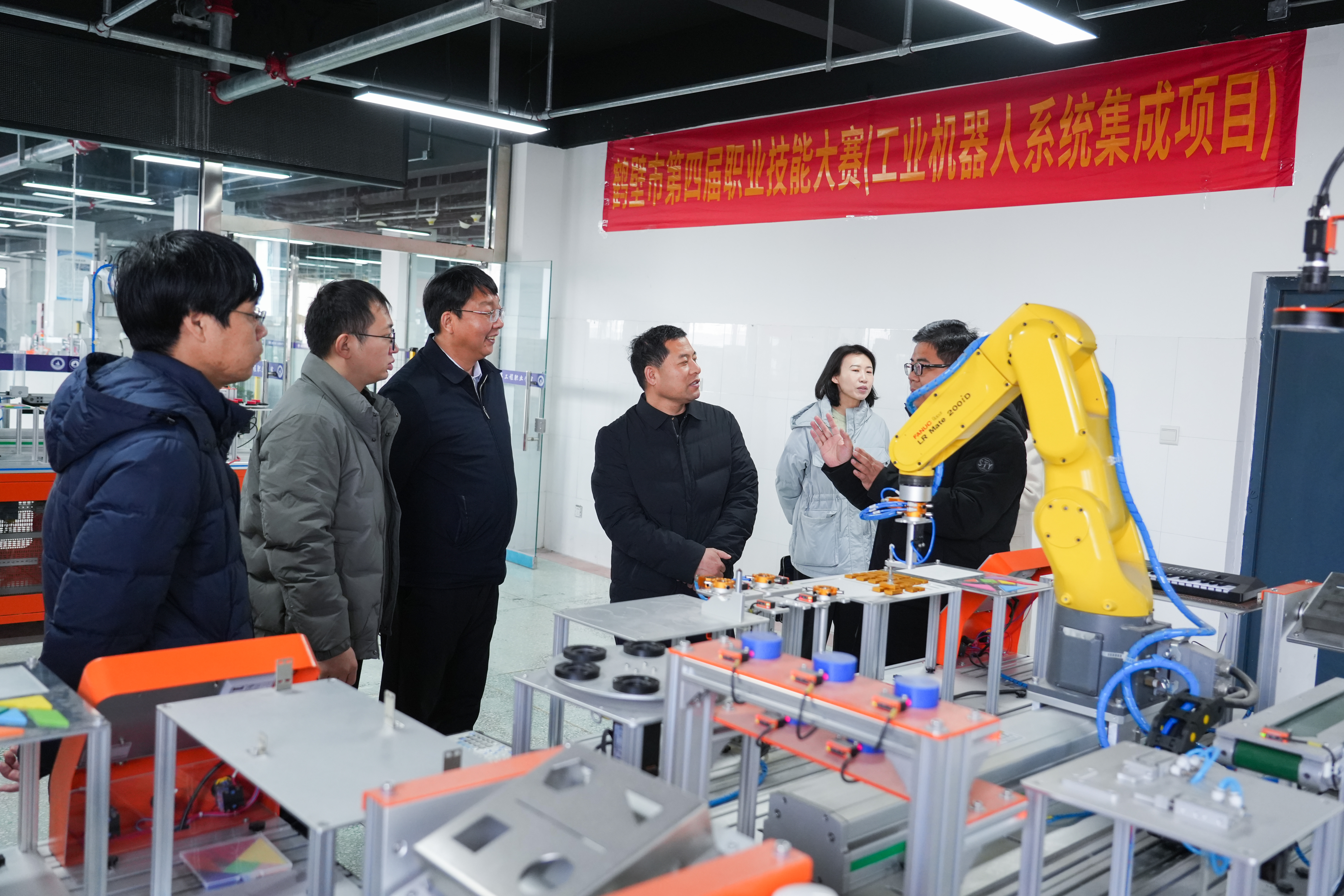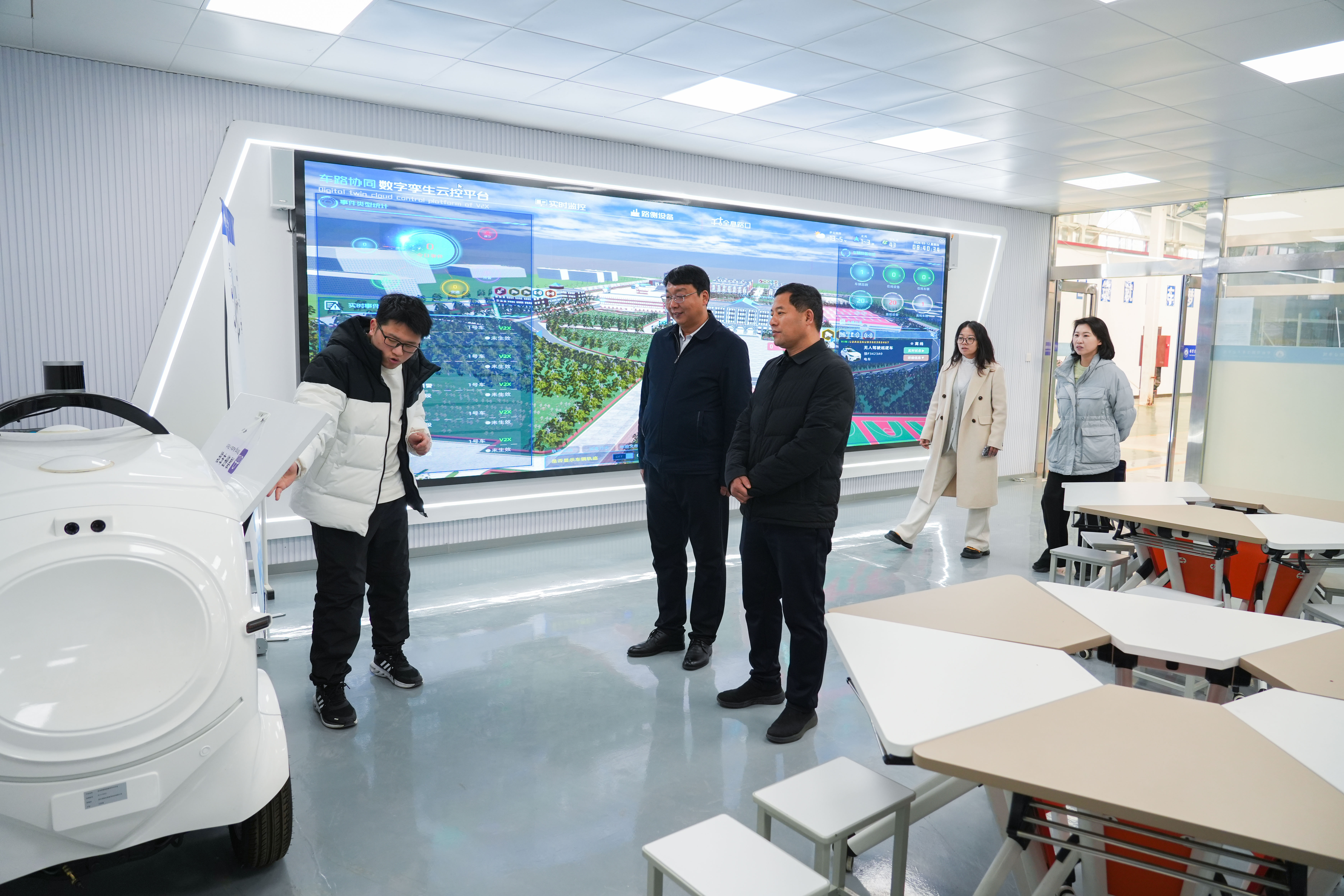和永彬副局长一行先后参观了无人机应用技术、智能制造、智能网联汽车、新能源汽车等产教融合实训基地,详细了解了设备配置、师资力量及培训承载能力,对学院在新能源汽车、先进制造等领域的实训条件表示高度认可。随后,调研组深入学生宿舍、餐厅等生活区域,细致考察住宿环境、餐饮卫生及配套服务设施,全方位评估培训保障能力。