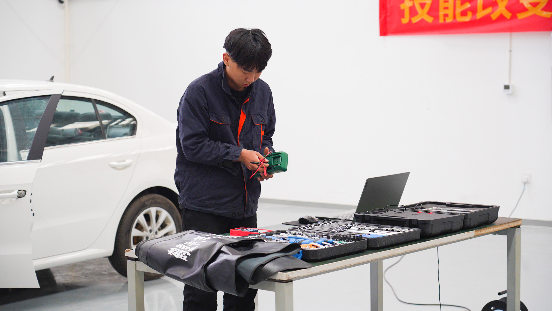 本次赛事各赛项分时段开赛,机电一体化(双人赛)、机器人系统集成(双人赛)、电工三大赛项率先开赛。双人赛赛场,参赛搭档分工协作、配合默契,精准完成装配、编程、系统调试等操作;电工赛项中,选手们规范操作、精益求精,在电路设计、接线检测等环节展现出扎实的专业功底。汽车技术赛项持续至6日下午,选手经抽签定场次工位后,围绕五大考核模块完成故障排查、参数测量等操作;零售是个人赛,选手围绕店铺运营、视觉营销、售后处理三大模块展开比拼。